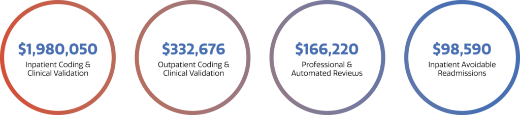 We were engaged as the “second pass” auditor for a 47,000 member Medicare Advantage plan, behind a large, national healthcare analytics and recovery organization. Utilizing the expertise and knowledge of our team, our detailed scrutiny uncovered missed claim recovery opportunities in the amount of $2.5MM total dollars, back to the plan and ultimately, their members.
